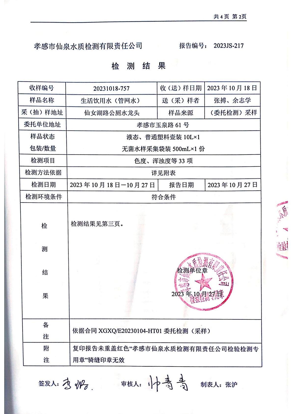 2023年10月檢測(cè)報(bào)告