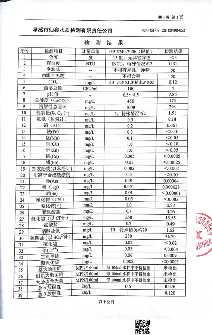 2018年4月水質(zhì)報(bào)告
