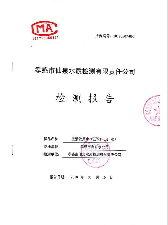 2018年5月水質(zhì)報(bào)告